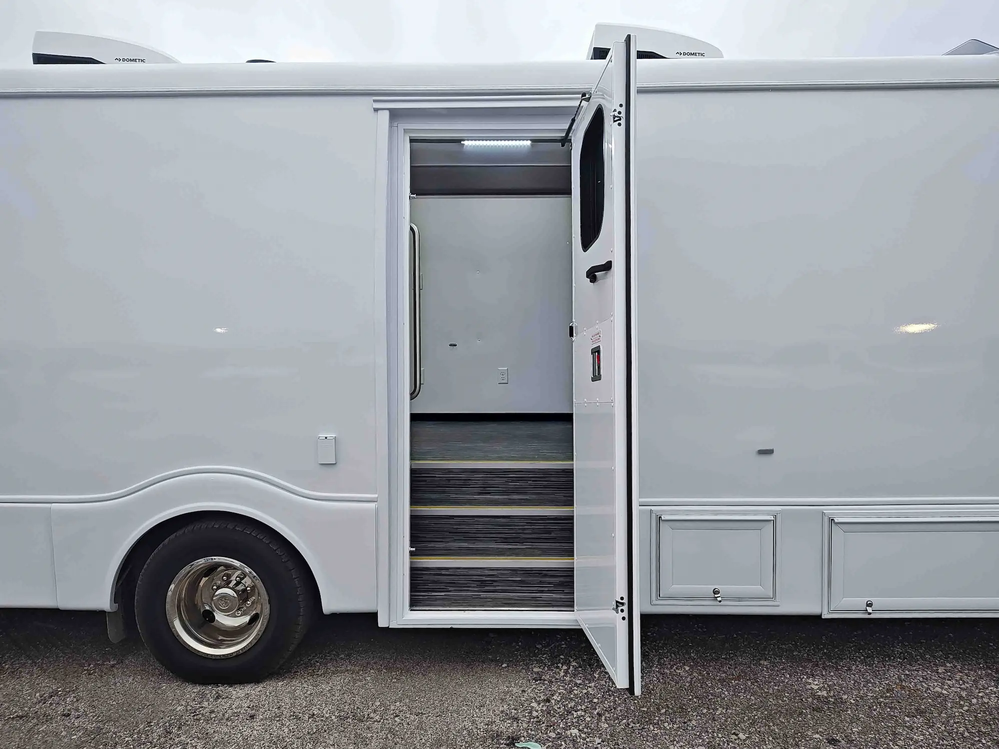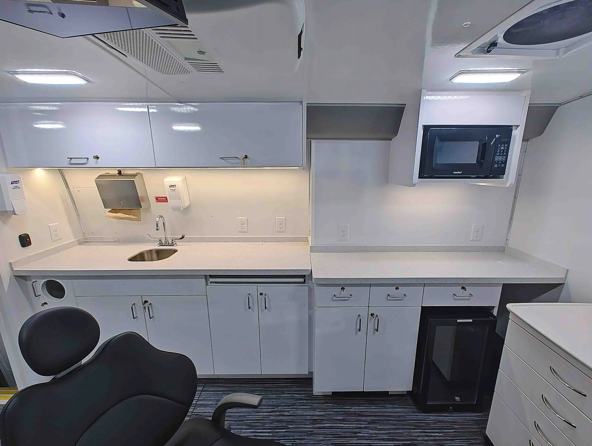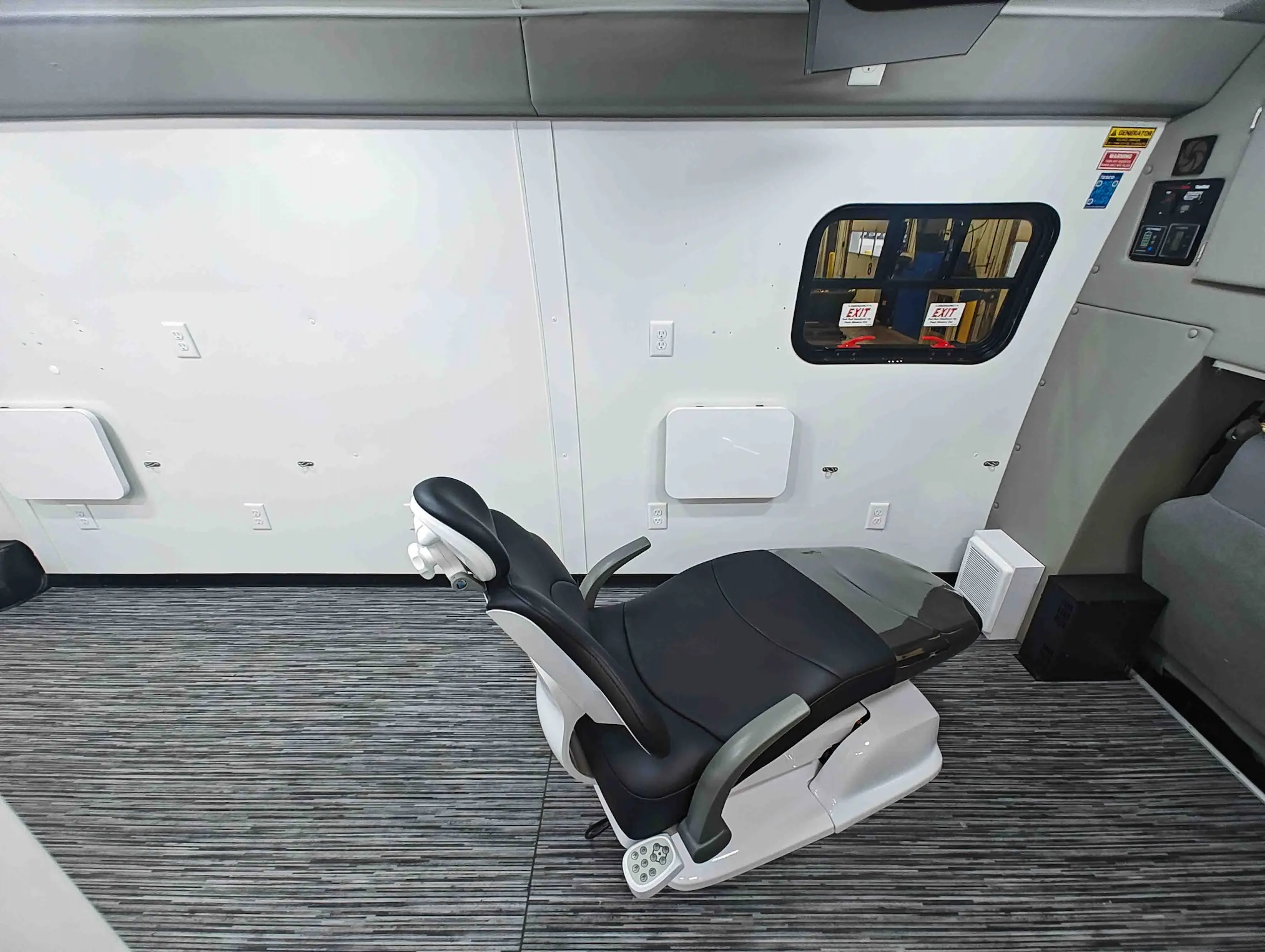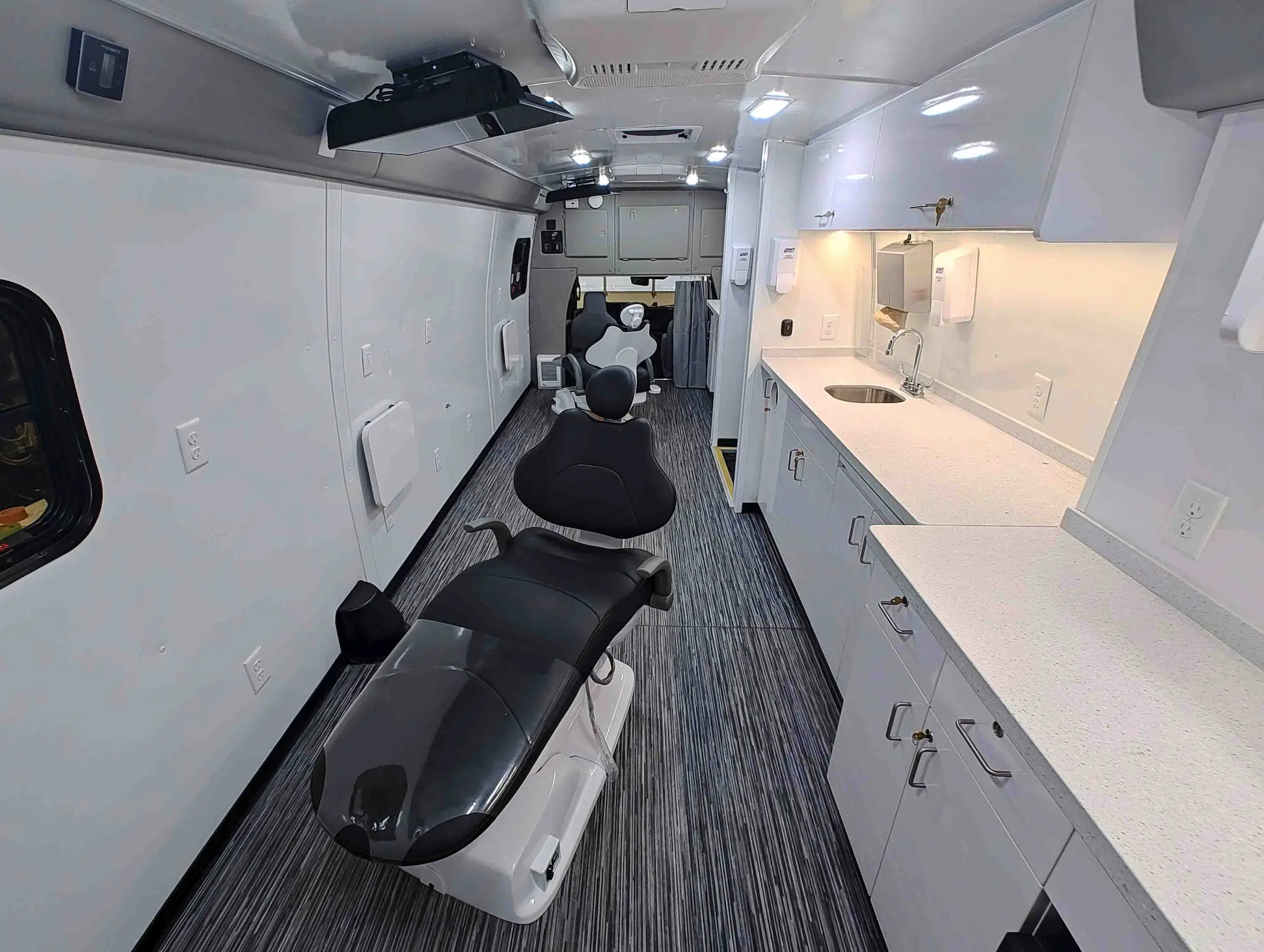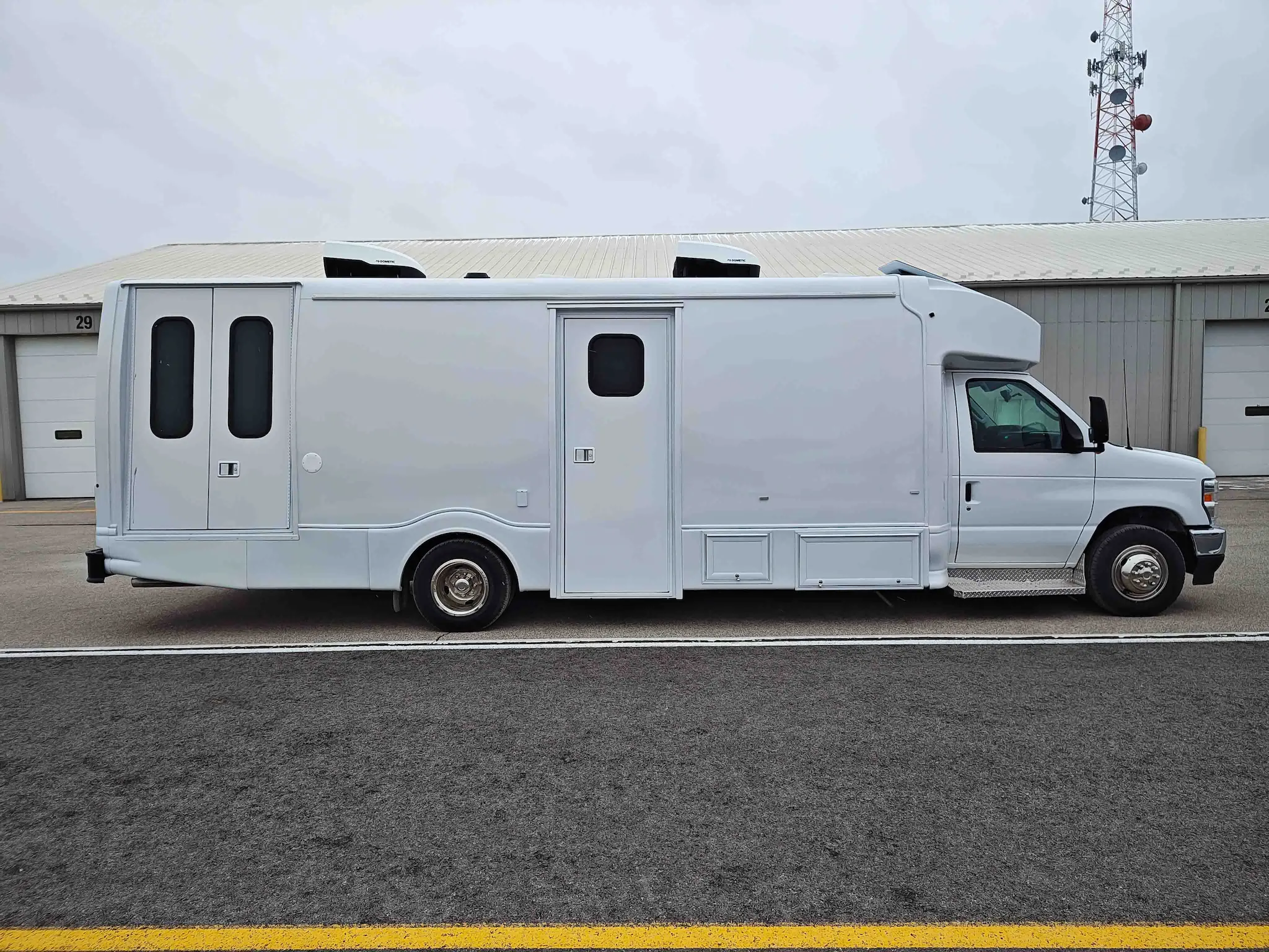For sale is a 2025 mobile dental clinic on a Ford E450 chassis with only 2,239 miles! This unit is in top-notch condition inside and out, and has all the necessary equipment to operate effectively in the field. The clinic comes equipped with a 7 Kw Cummins Onan commercial grade generator, 50 Amp Shore power access with cord, RVS camera system, (2) DCI dental exam chairs, (2) midmark equipment carts, (2) Dometic rooftop AC units, and (3) Toe kick heaters. In addition to all of the equipment, this unit also features (2) ceiling mounted Vizio TV monitors, upper and lower custom laminate locking cabinets throughout, sink with heat, (2) flip up desk, (2) workstation tray, convenience refrigerator, and a Comfee microwave. This clinic is ready to be added to your fleet immediately!