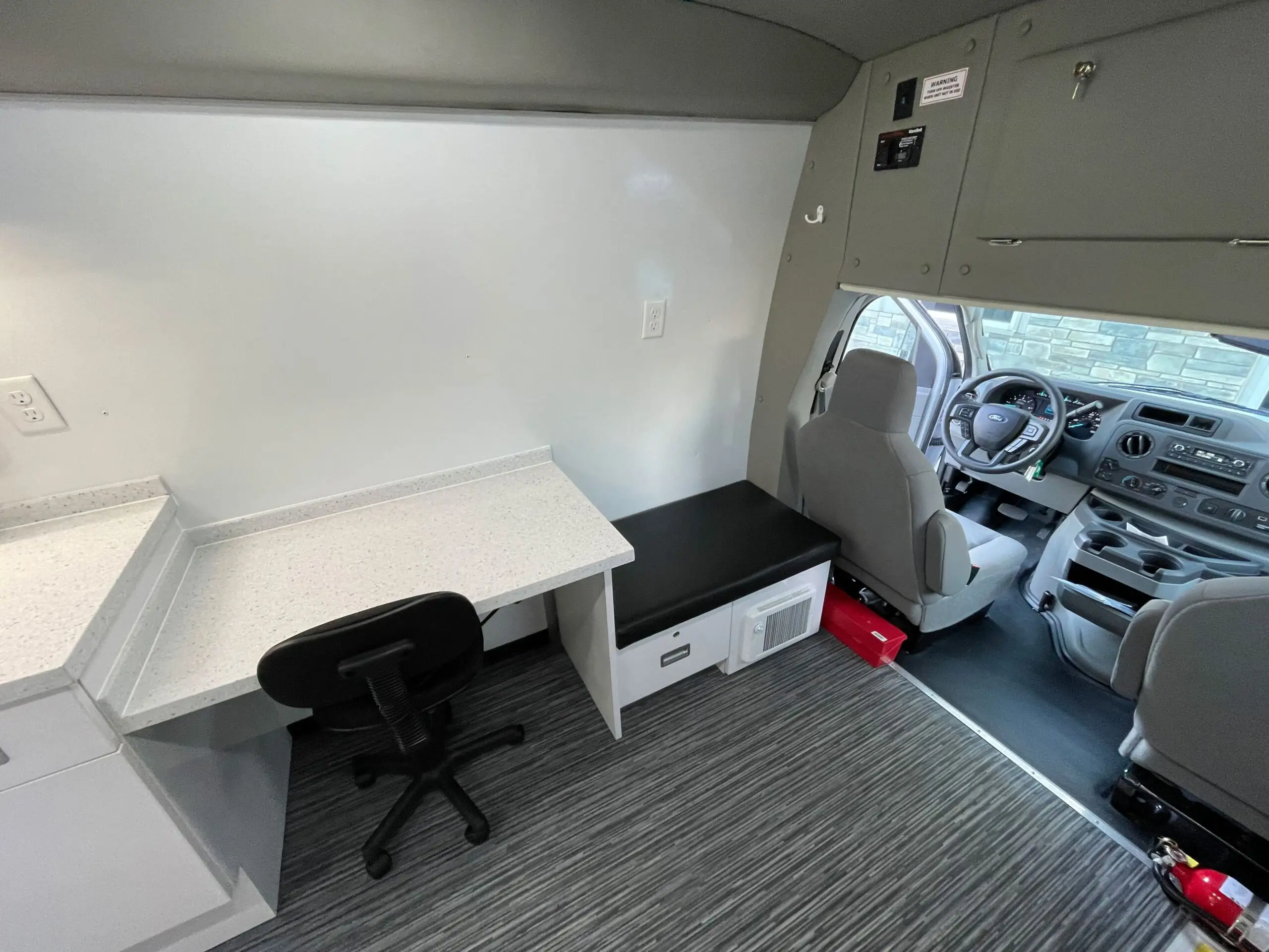 The Ford E-350 is a nimble and versatile single-room unit that maximizes operational efficiency with front and rear access points. It’s ideal for mobile service providers operating in challenging areas. Equipped with a standard one-room exam room, the unit’s true five-sided structure ensures industry-leading safety. The aerodynamic exterior design and comfortable interior make it stand out in the market.