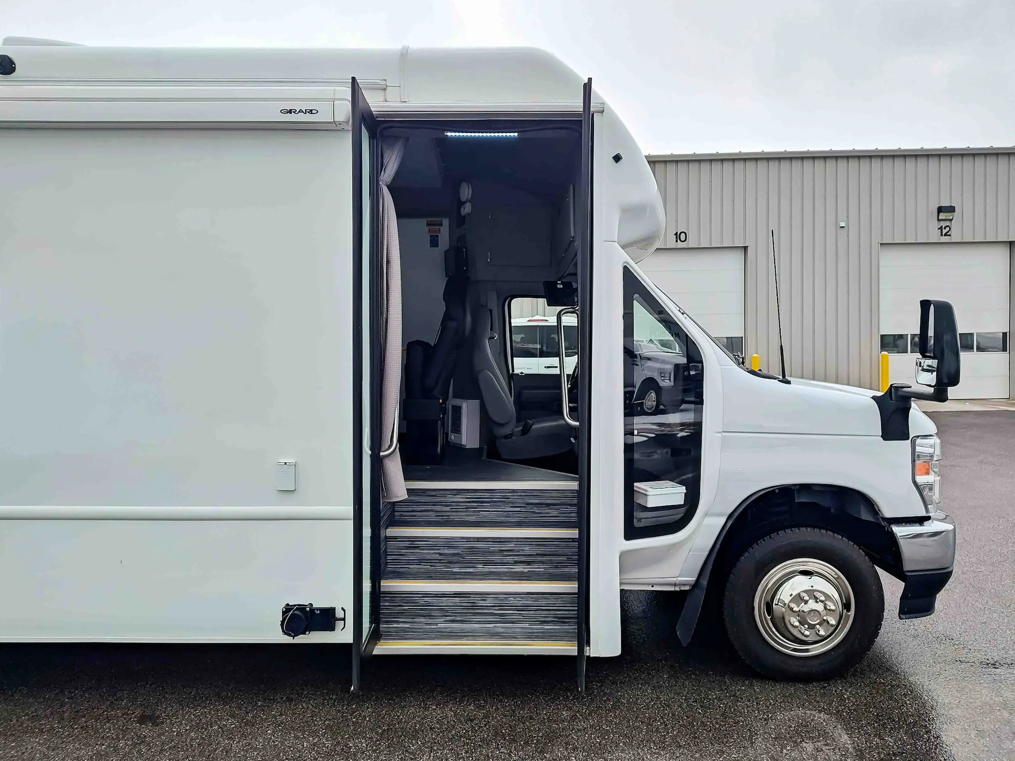 The new Ford E-450 is a mid-sized, two-room mobile unit with flexible service options and two separate entry points for maximum throughput potential. It’s easy to drive and comes with standard features like an exam table, medical-grade fridge, bathroom, and custom cabinetry. The model includes a full roll cage for safety and has a roomy straight wall exterior design. The Ford E-450 is a versatile and reliable option for any customer application, leading its class in the market.