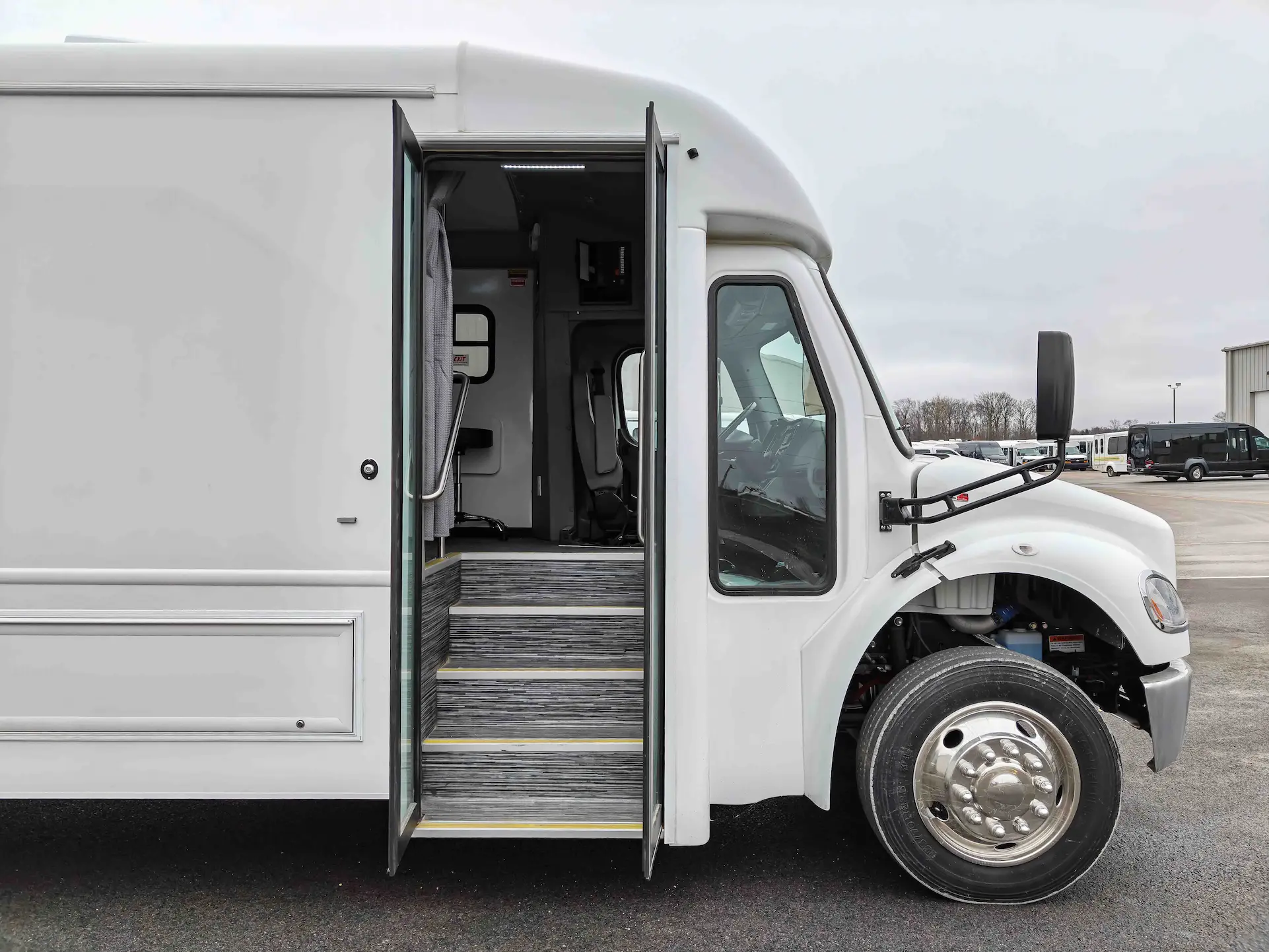 This Freightliner offers wheelchair accessibility and three spacious rooms. It has a large entry area, middle room for privacy, and sleek curved wall design for comfort. At 40′, it’s our largest mobile unit and perfect for multi-modality healthcare services like dental or primary care. Standard features include an exam table, medical-grade fridge, and bathroom. The Freightliner offers excellent stability, comfort, dependability, quality, and safety, making it a market leader in its class. It’s a versatile and reliable mobile unit for any customer application.