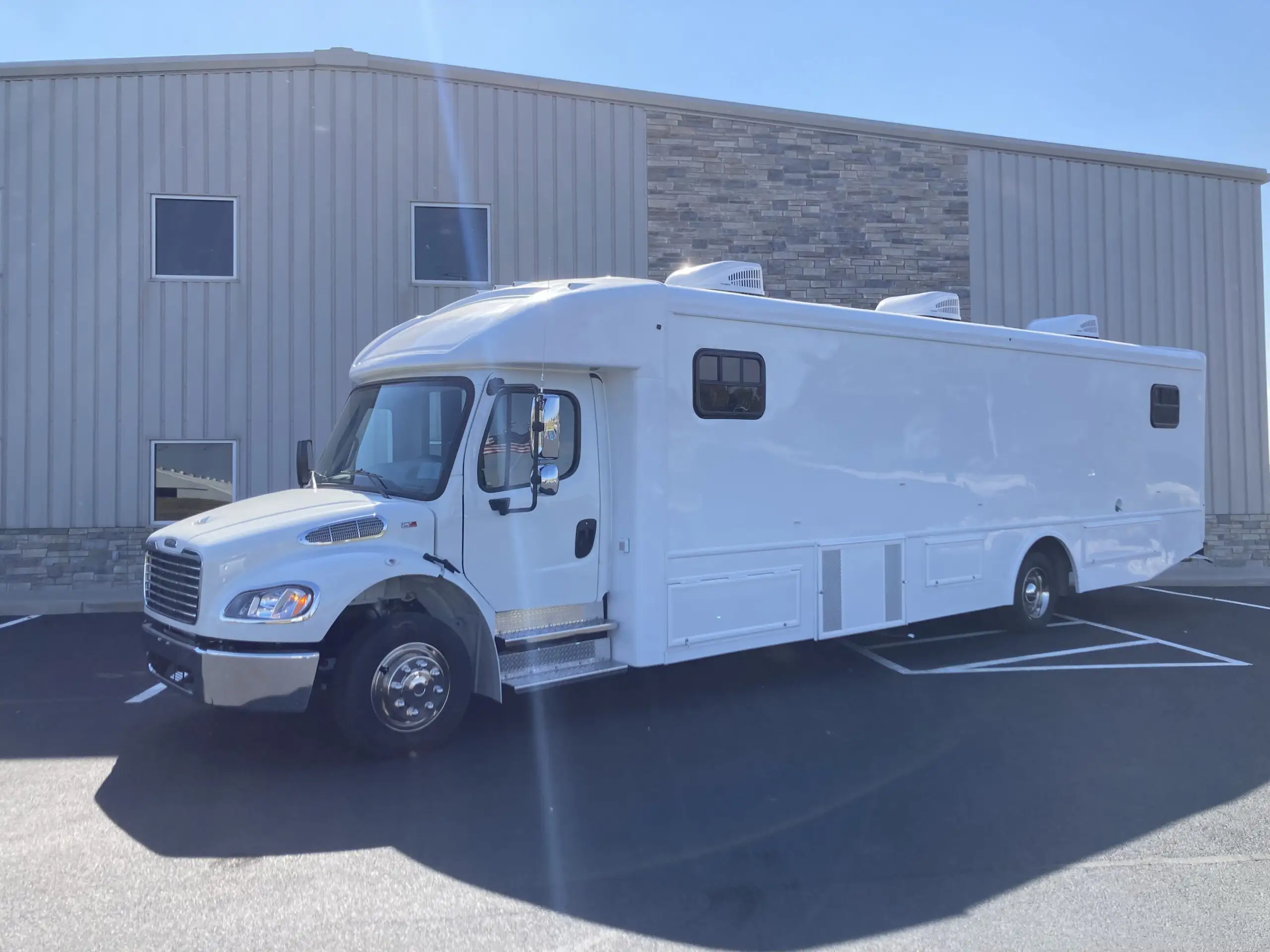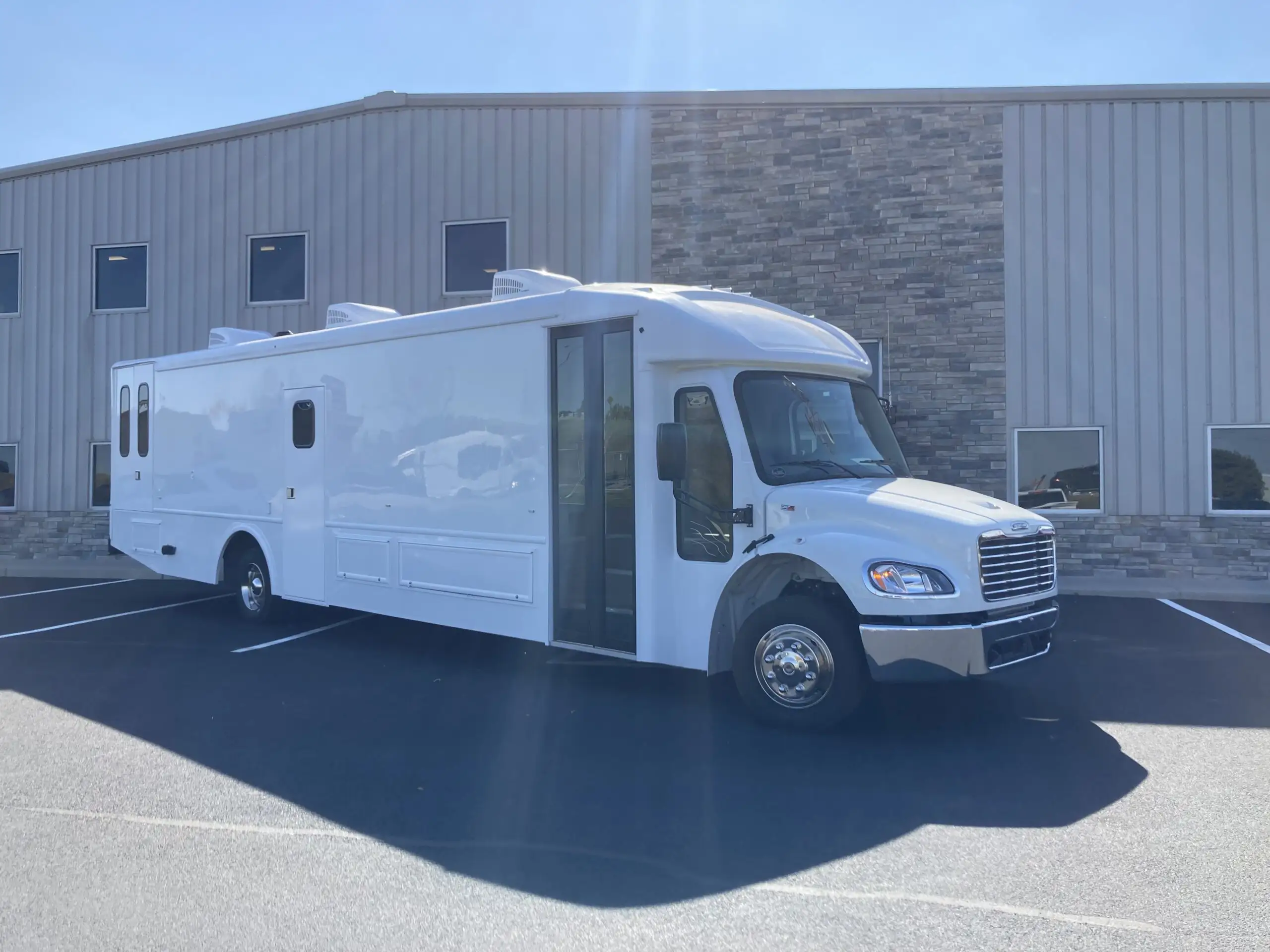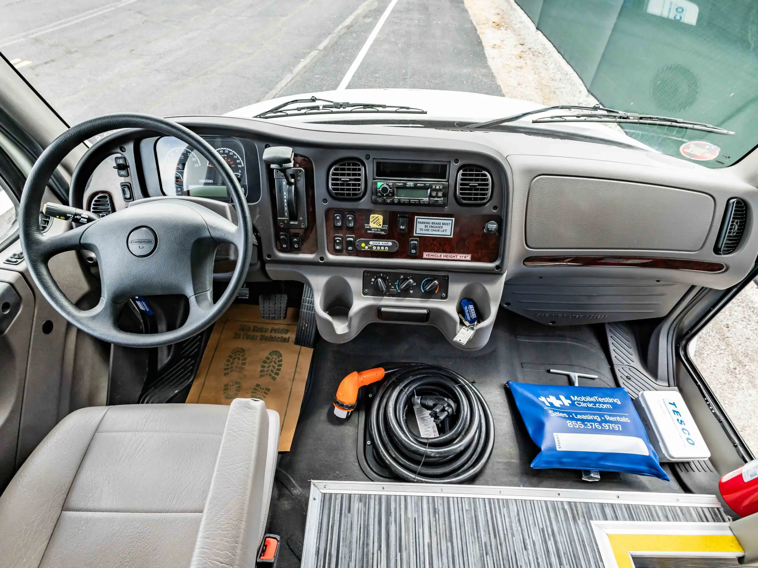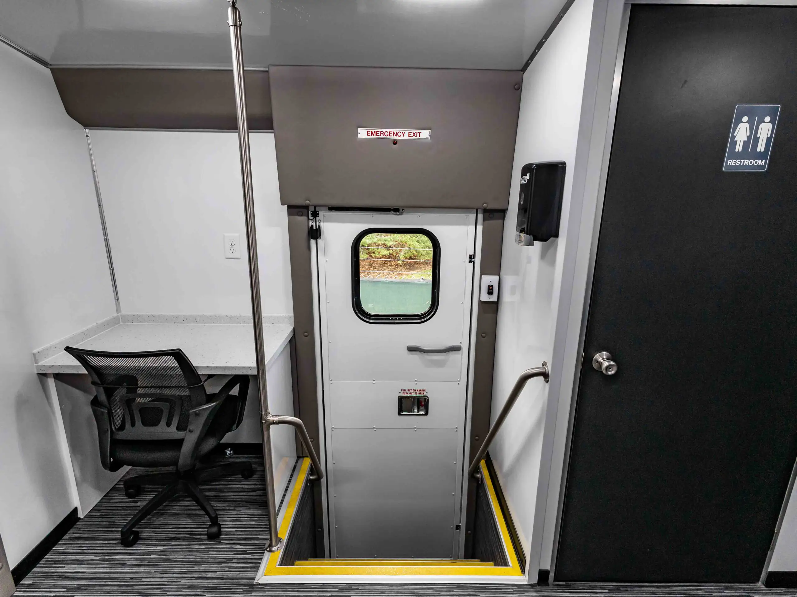 Our new flagship Freightliner mobile unit offers wheelchair accessibility and two private entry doors, with a length of 40 feet. It has three entry points and three private rooms, ideal for multi-modality healthcare services like dental or primary care. The straight wall exterior design and comfortable interior add to its ample room, and standard features include an exam table, medical-grade fridge, and bathroom. This mobile unit offers top-notch stability, comfort, dependability, quality, and safety, making it a class leader in the market for any customer application.