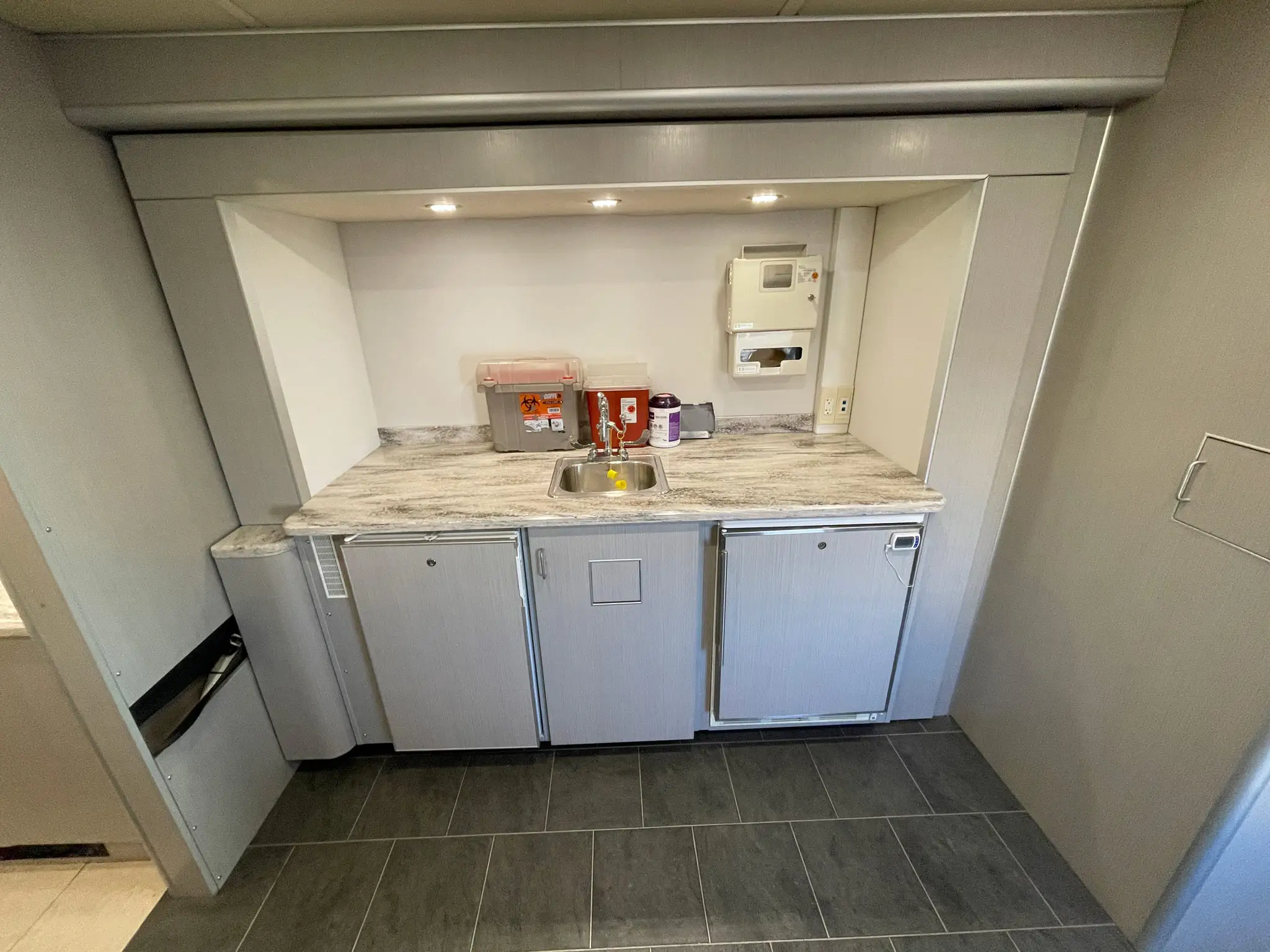 For sale is a 2014 Mobile Clinic 15,085 with miles. This unit features LCI electronic leveling system, 50 amp shore power access with a cord, and 20 Kw Power Tech generator. The front exam room is equipped with a workstation, Midmark exam bed, sink, Covidien sharps container, upper and lower locking cabinets, toe kick heater, and Welch Allyn diagnostic board. The middle room features a patient waiting bench, workstation, Summit medical fridge, Accucold medical freezer, Covidien sharps container, sink, blood draw chair, upper cabinetry, and a bathroom with a sink. The rear exam rooms includes a Midmark exam bed, upper locking cabinets, Seca digital scale with height rod, O2 tanks with holders, Covidien sharps container, Welch Allyn diagnostic board, sink, and a Braun UVL. For more information, please call Ben at 419-708-3112.