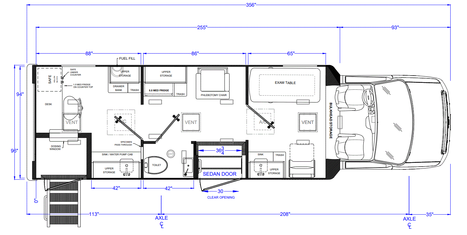 Our vehicles are NEVER built from retrofitted RV’s which are not designed to hold up to the operational use of medical clinics. Each TESCO Specialty Vehicles is custom built for its commercial application, with steel body construction directly to the chassis. We welcome the opportunity to show you the difference and review with you our manufacturing process.