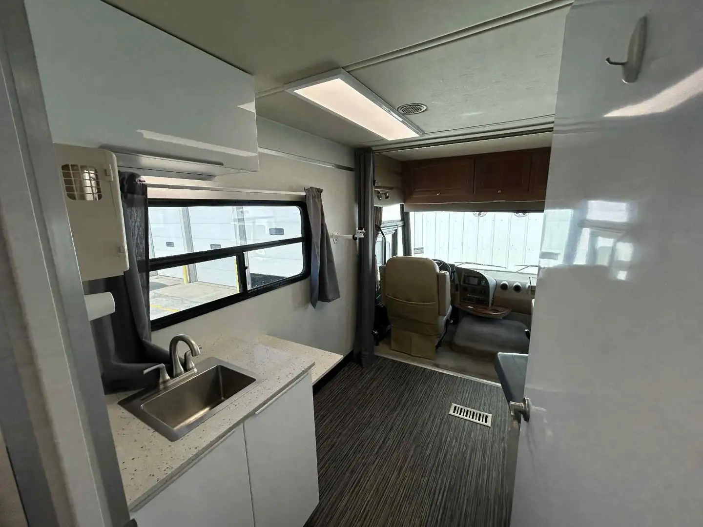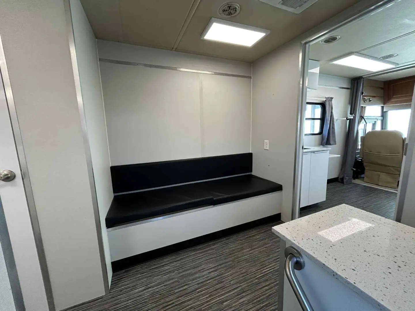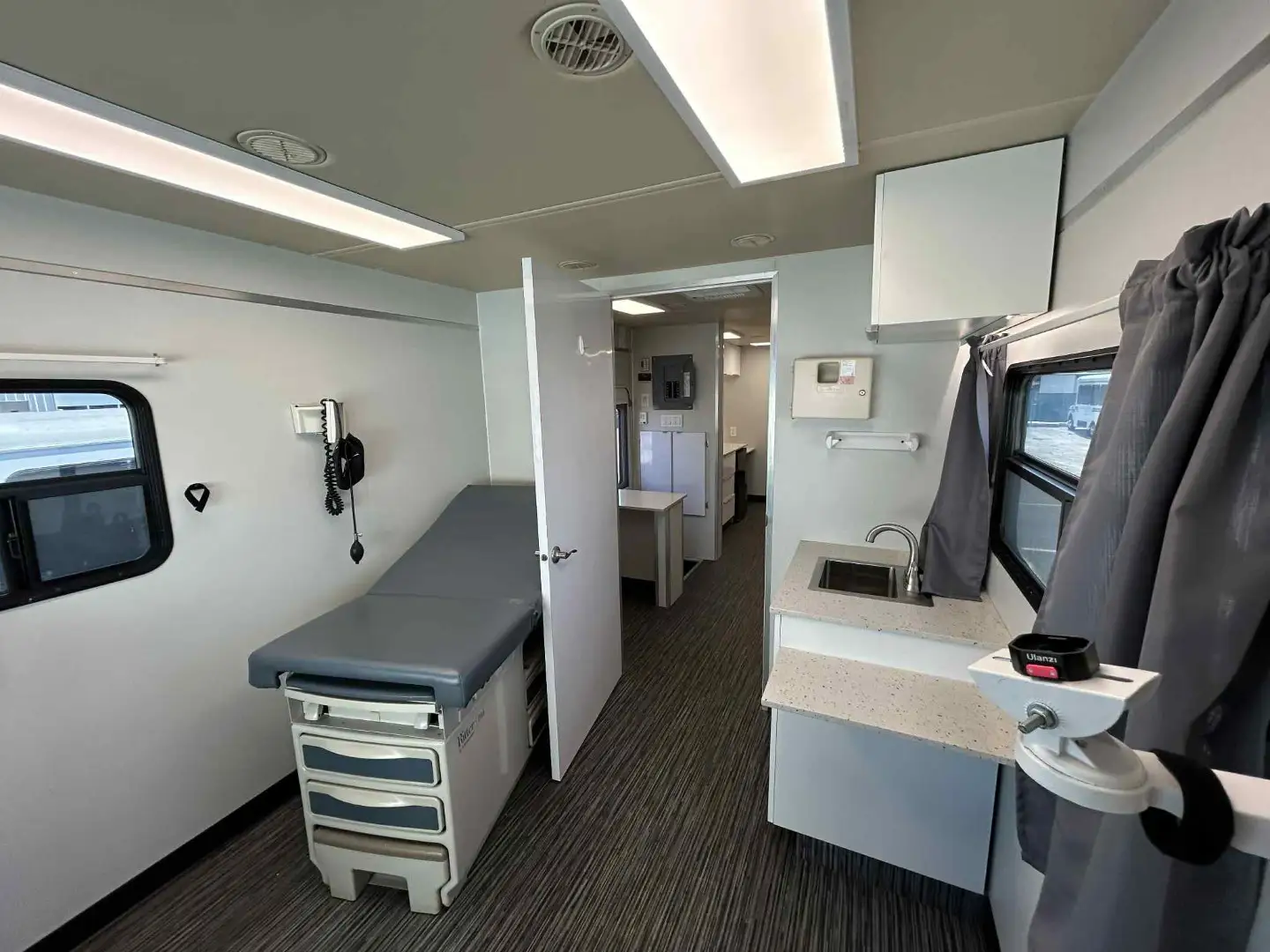 For sale is a 2012 Ford Motorhome mobile clinic with 56,525 miles, in excellent condition and ready for continued use. This well-maintained unit features three separate exam areas, each with privacy doors. The front exam room includes a Ritter 204 exam bed, Welch/Allyn BP cuff, TV monitor mount, and a sink with lower storage. The middle room offers a check-in desk/workstation, bench seating, a Magic Chef convenience fridge, lower locking cabinets, a bathroom with sink and specimen pass-through, and a Seca Stadiometer height measurement. The back exam room is similar to the front but lacks a sink and includes a rooftop A/C unit. This motorhome is equipped with a 10Kw Cummins Onan QD Diesel generator with an interior start button and hour display, 50 Amp Shore Power Access with cord, two Dometic rooftop A/C units, toe-kick heaters, electric entry steps, a backup camera, a Jensen stereo system, and an HWH Computerized Leveling System. For more information or to schedule a viewing, please contact Ben at 419-708-3112