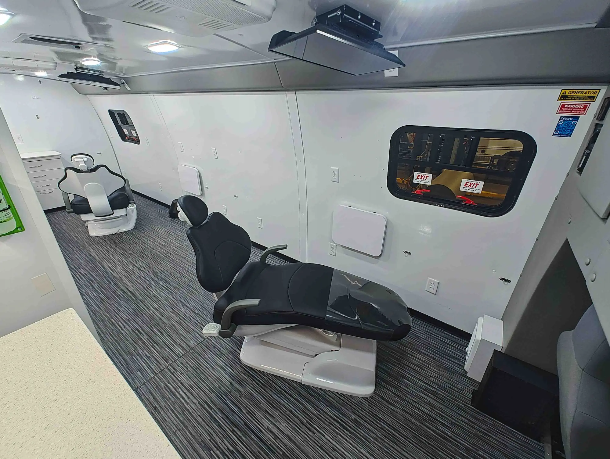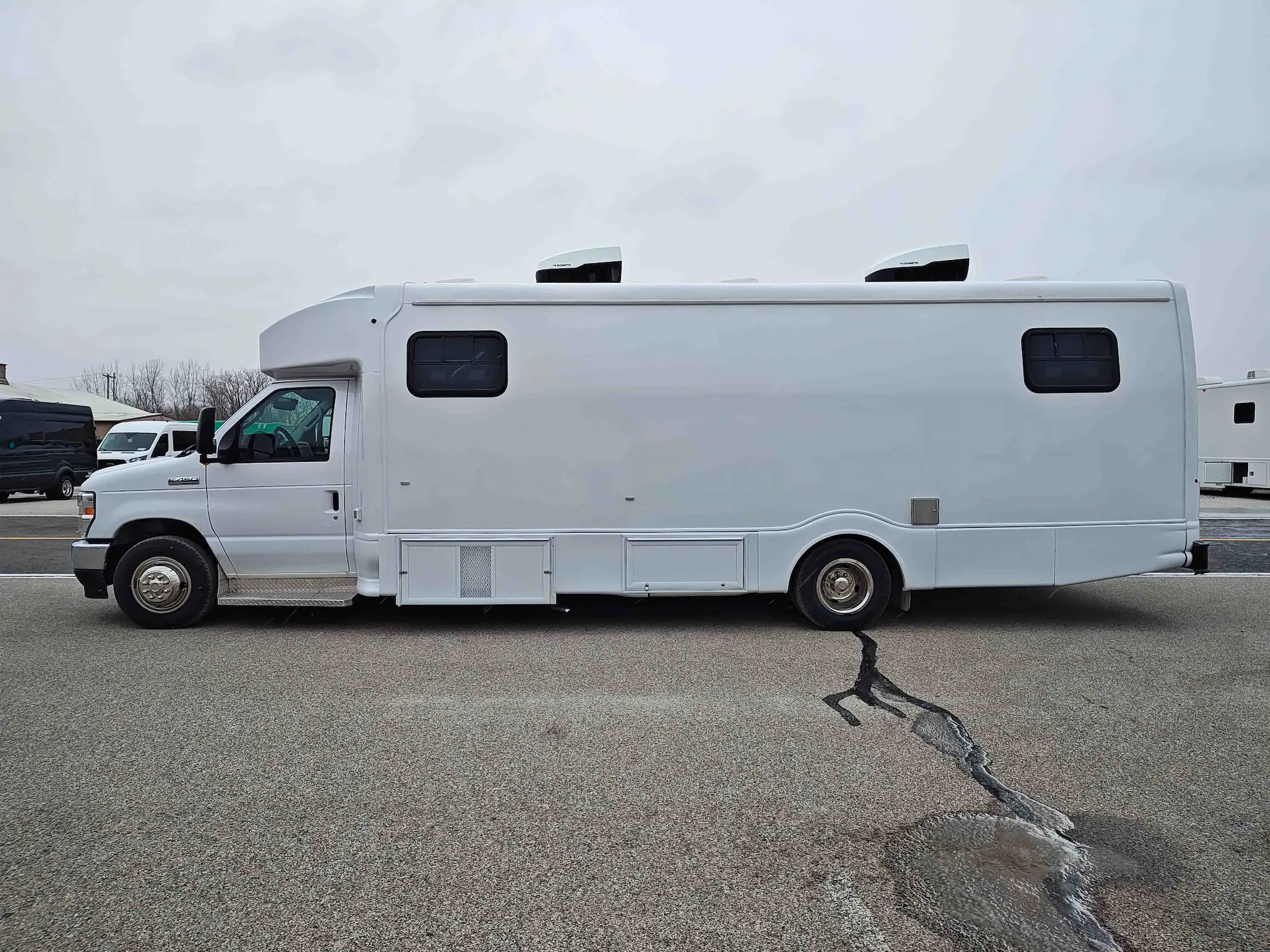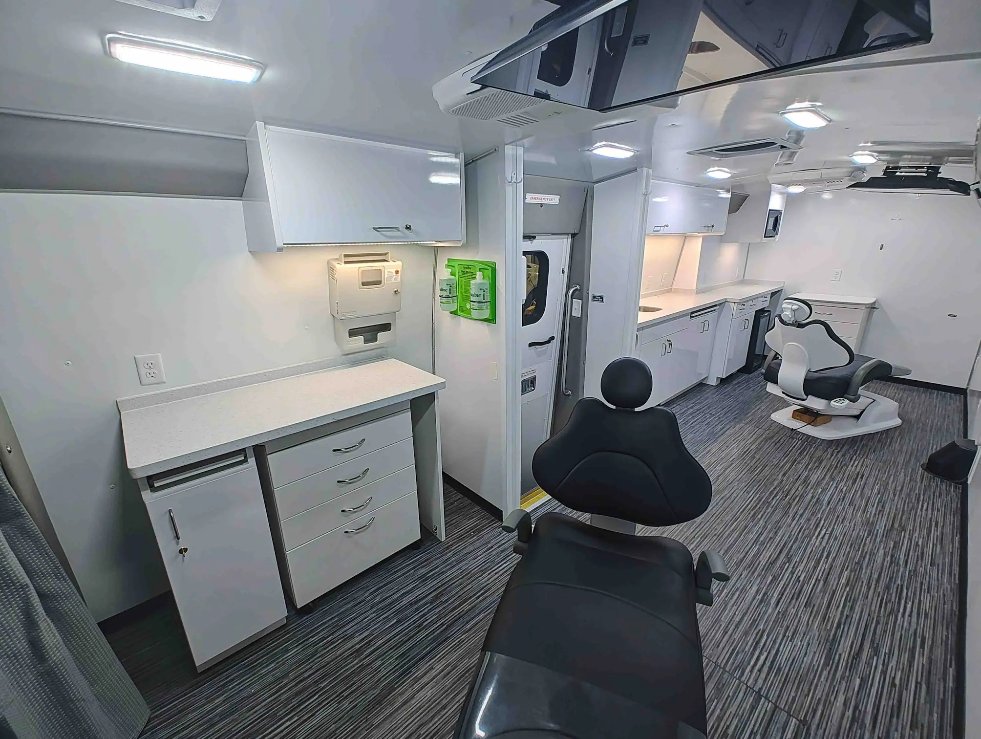 For sale is a 2025 mobile dental clinic on a Ford E450 chassis with only 2,239 miles! This unit is in top-notch condition inside and out, and has all the necessary equipment to operate effectively in the field. The clinic comes equipped with a 7 Kw Cummins Onan commercial grade generator, 50 Amp Shore power access with cord, RVS camera system, (2) DCI dental exam chairs, (2) midmark equipment carts, (2) Dometic rooftop AC units, and (3) Toe kick heaters. In addition to all of the equipment, this unit also features (2) ceiling mounted Vizio TV monitors, upper and lower custom laminate locking cabinets throughout, sink with heat, (2) flip up desk, (2) workstation tray, convenience refrigerator, and a Comfee microwave. This clinic is ready to be added to your fleet immediately!