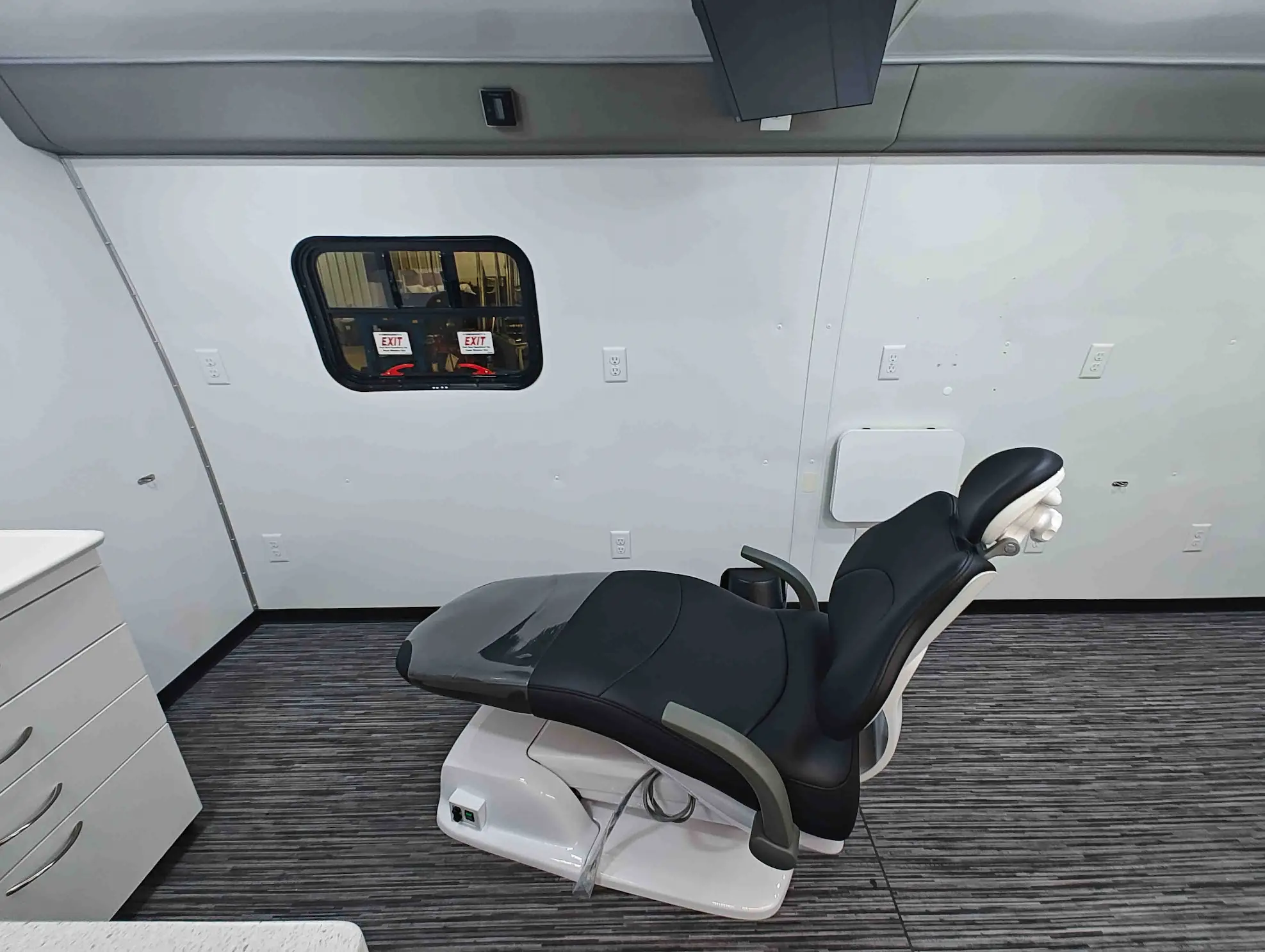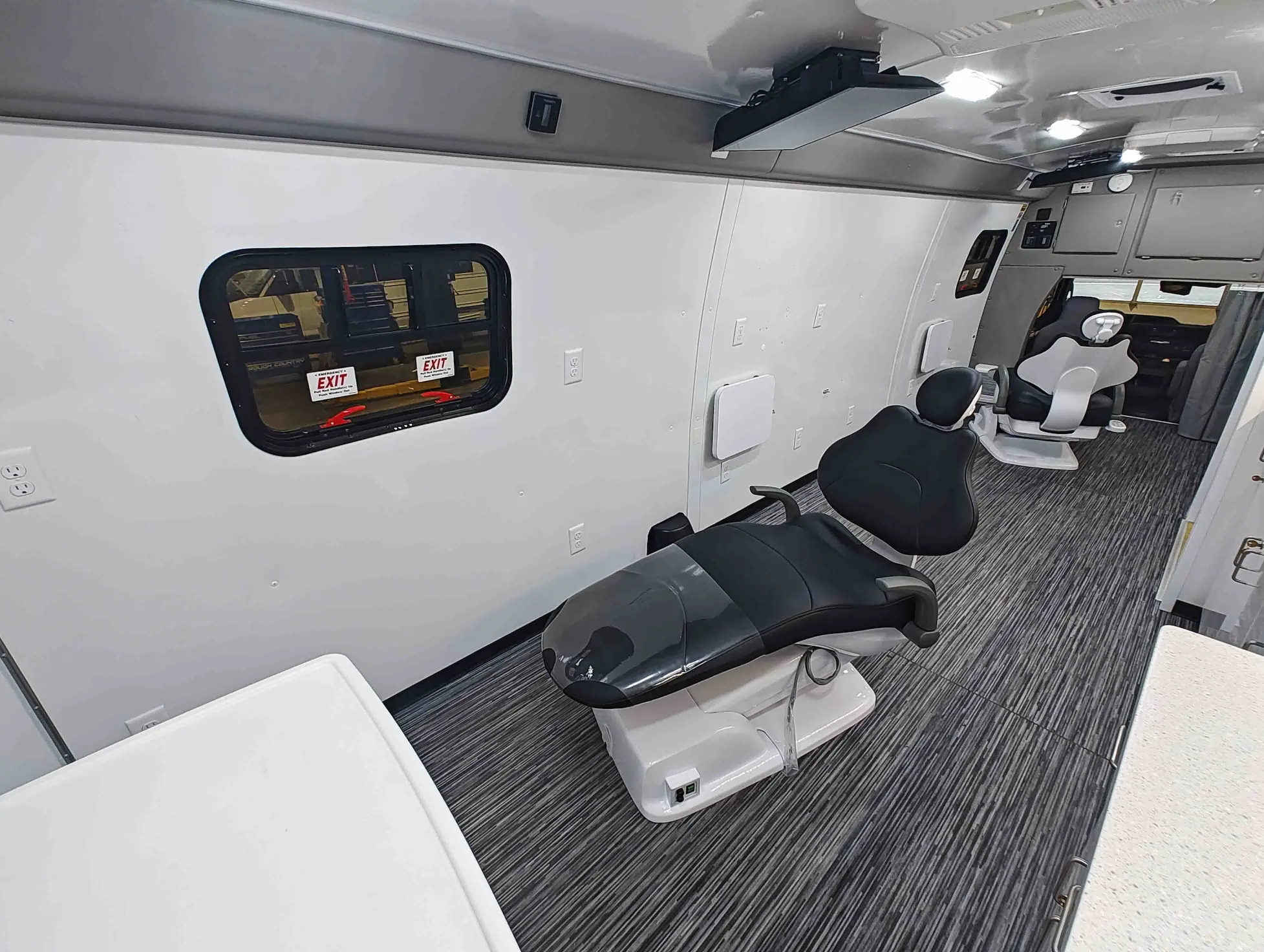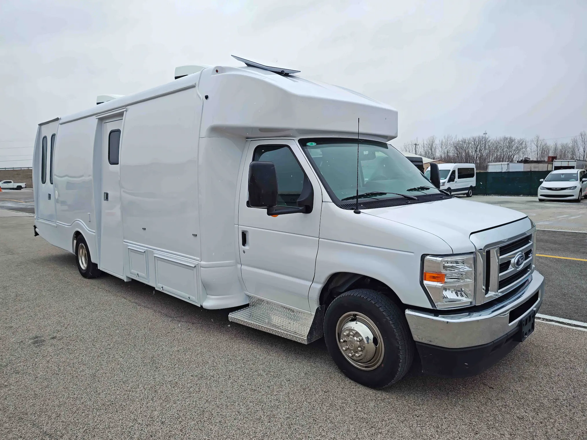 For sale is a 2025 mobile dental clinic on a Ford E450 chassis with only 2,239 miles! This unit is in top-notch condition inside and out, and has all the necessary equipment to operate effectively in the field. The clinic comes equipped with a 7 Kw Cummins Onan commercial grade generator, 50 Amp Shore power access with cord, RVS camera system, (2) DCI dental exam chairs, (2) midmark equipment carts, (2) Dometic rooftop AC units, and (3) Toe kick heaters. In addition to all of the equipment, this unit also features (2) ceiling mounted Vizio TV monitors, upper and lower custom laminate locking cabinets throughout, sink with heat, (2) flip up desk, (2) workstation tray, convenience refrigerator, and a Comfee microwave. This clinic is ready to be added to your fleet immediately!