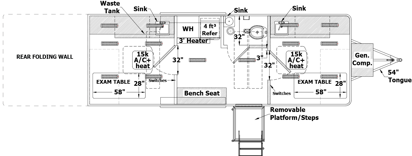 Our vehicles are NEVER built from retrofitted RV’s which are not designed to hold up to the operational use of medical clinics. Each TESCO Specialty Vehicles is custom built for its commercial application, with steel body construction directly to the chassis. We welcome the opportunity to show you the difference and review with you our manufacturing process.
