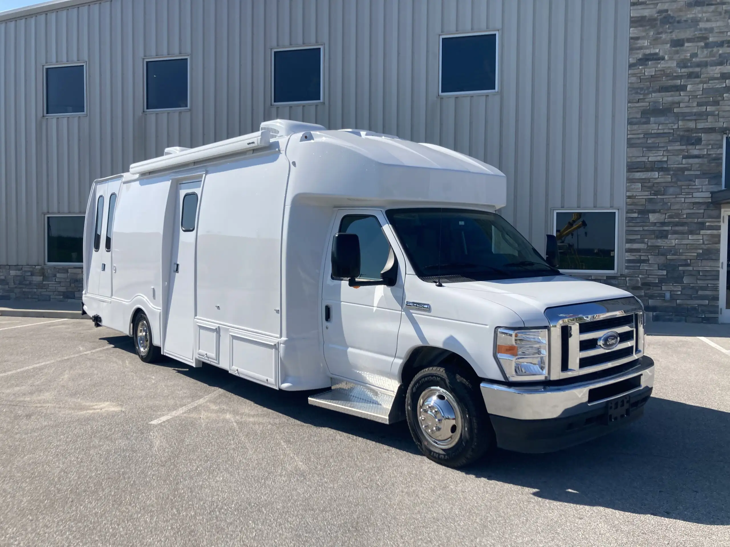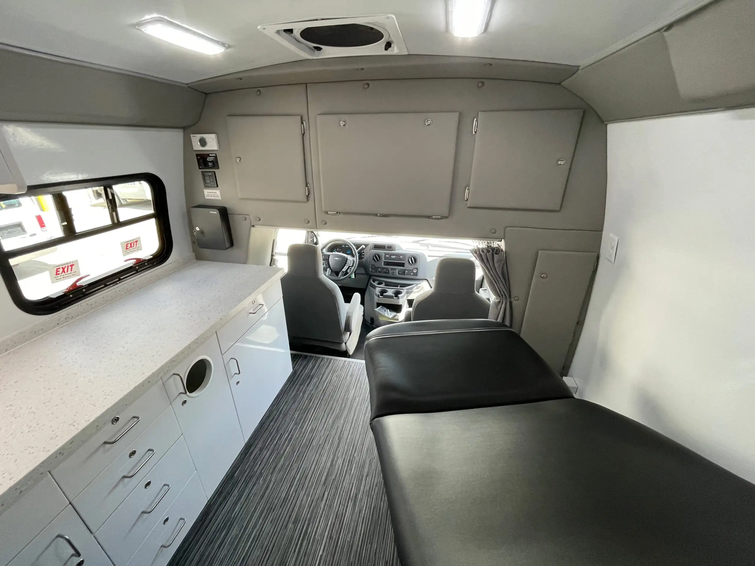 The new Ford E-450 at 30′ offers three separate spaces for services, including wheelchair accessibility, maximizing productivity. Its larger size provides a comfortable and spacious feel, yet remains nimble enough in limited parking areas. Standard features include an exam table, medical-grade fridge, and bathroom, with a true five-sided structure for safety. With its aerodynamic exterior and comfortable interior, the Ford E-450 is a reliable and efficient vehicle, ideal for programs requiring space, accessibility, functionality, and safety.