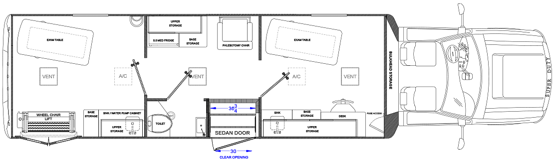 Our vehicles are NEVER built from retrofitted RV’s which are not designed to hold up to the operational use of medical clinics. Each TESCO Specialty Vehicles is custom built for its commercial application, with steel body construction directly to the chassis. We welcome the opportunity to show you the difference and review with you our manufacturing process.