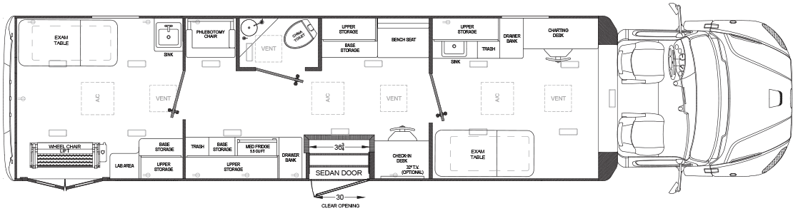 Our vehicles are NEVER built from retrofitted RV’s which are not designed to hold up to the operational use of medical clinics. Each TESCO Specialty Vehicles is custom built for its commercial application, with steel body construction directly to the chassis. We welcome the opportunity to show you the difference and review with you our manufacturing process.