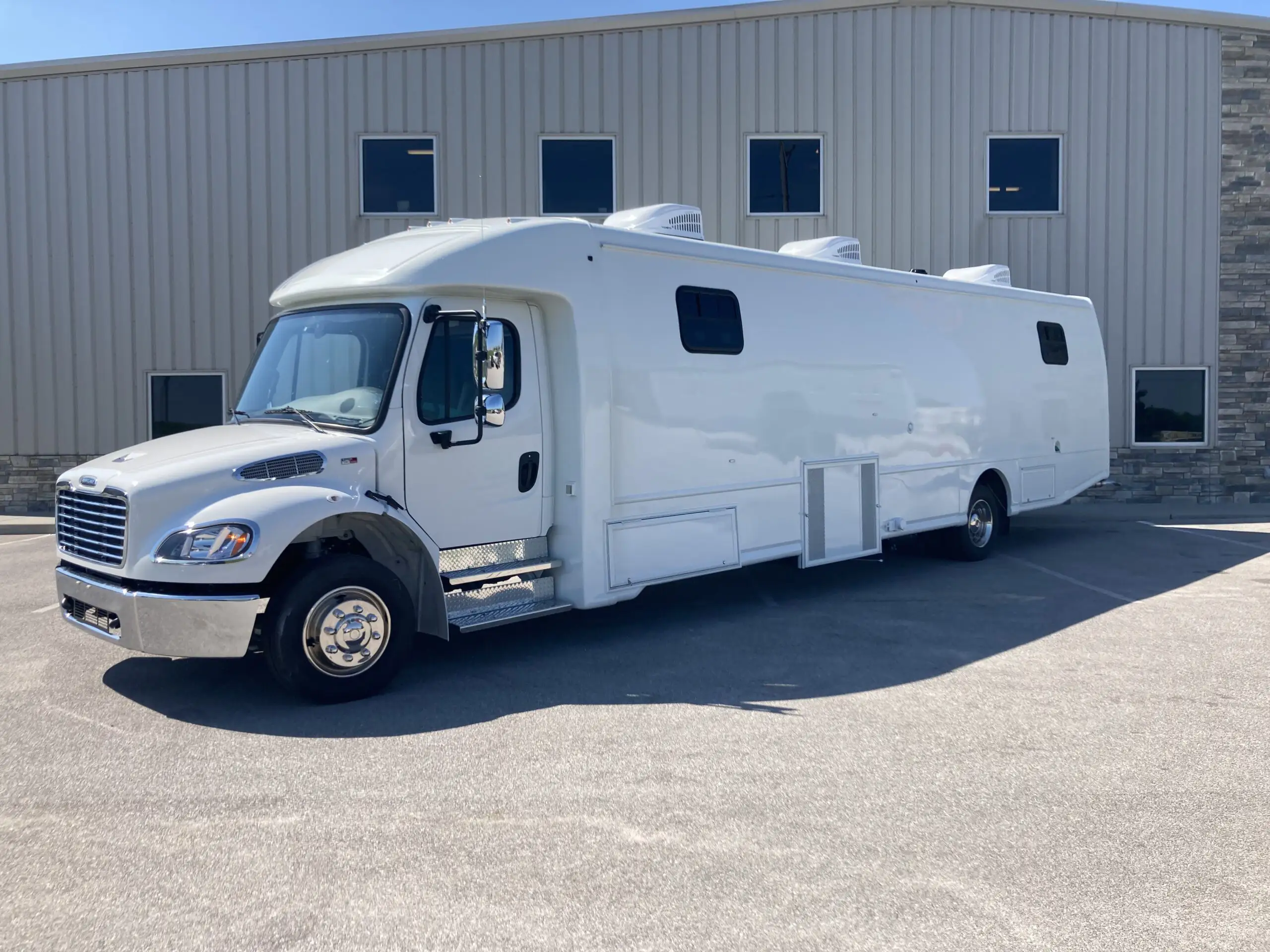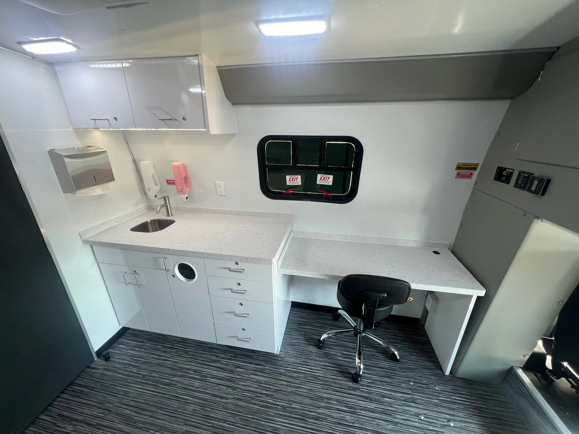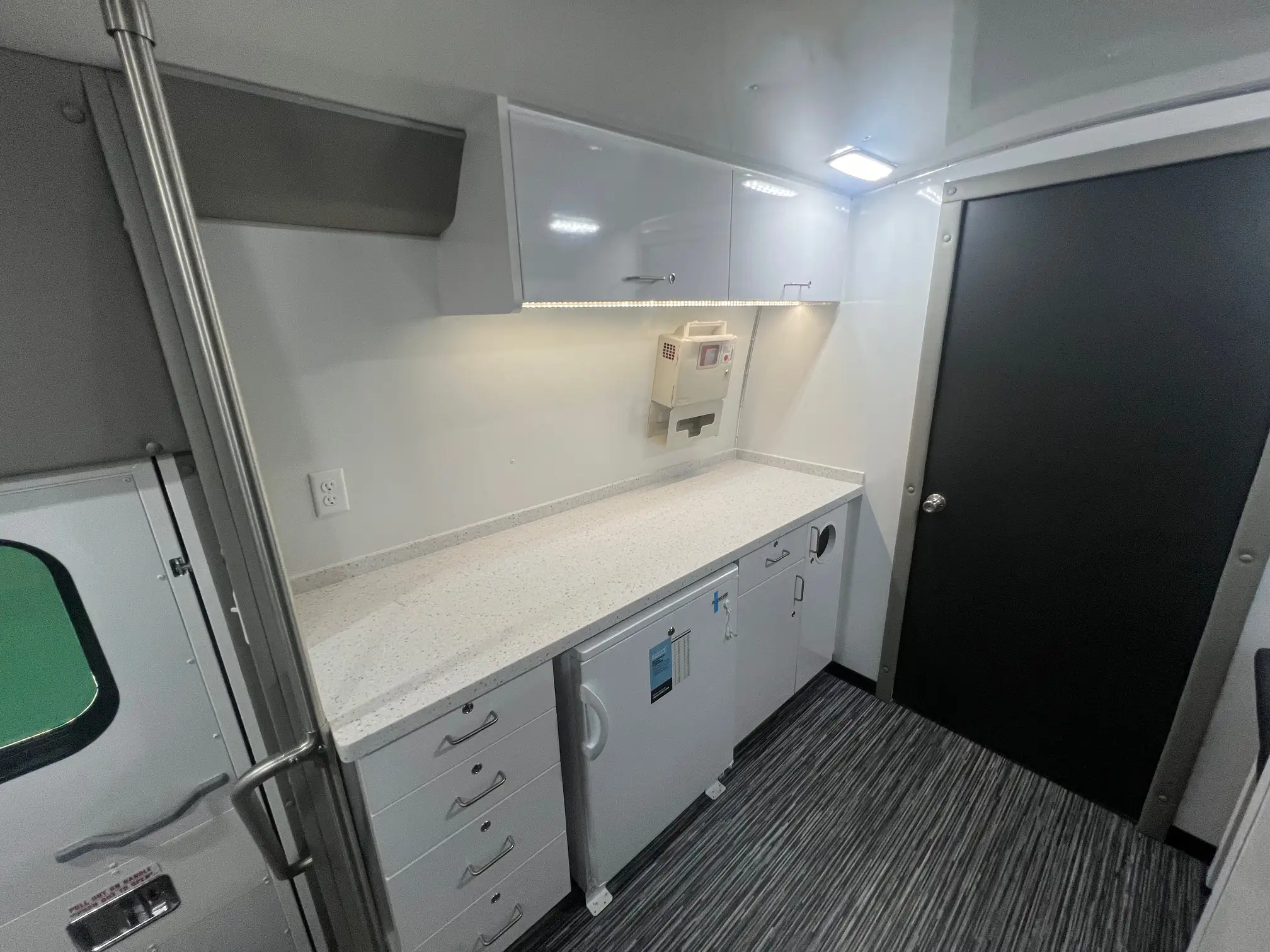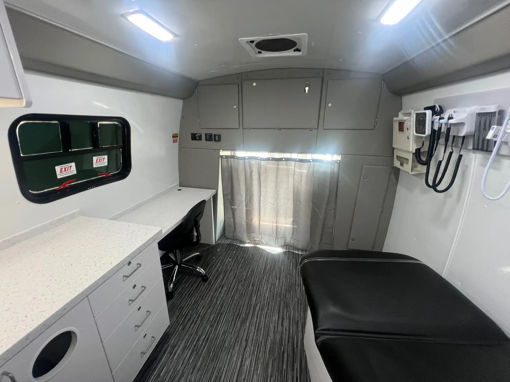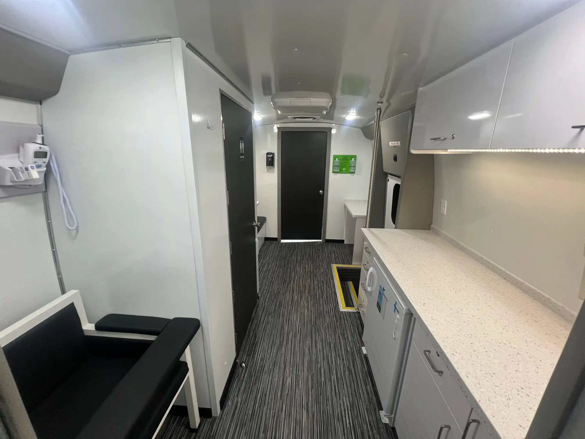 This Freightliner offers wheelchair accessibility and three spacious rooms. It has a large entry area, middle room for privacy, and sleek curved wall design for comfort. At 40′, it’s our largest mobile unit and perfect for multi-modality healthcare services like dental or primary care. Standard features include an exam table, medical-grade fridge, and bathroom. The Freightliner offers excellent stability, comfort, dependability, quality, and safety, making it a market leader in its class. It’s a versatile and reliable mobile unit for any customer application.