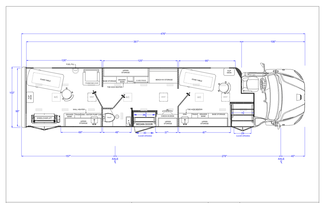 Our vehicles are NEVER built from retrofitted RV’s which are not designed to hold up to the operational use of medical clinics. Each TESCO Specialty Vehicles is custom built for its commercial application, with steel body construction directly to the chassis. We welcome the opportunity to show you the difference and review with you our manufacturing process.
