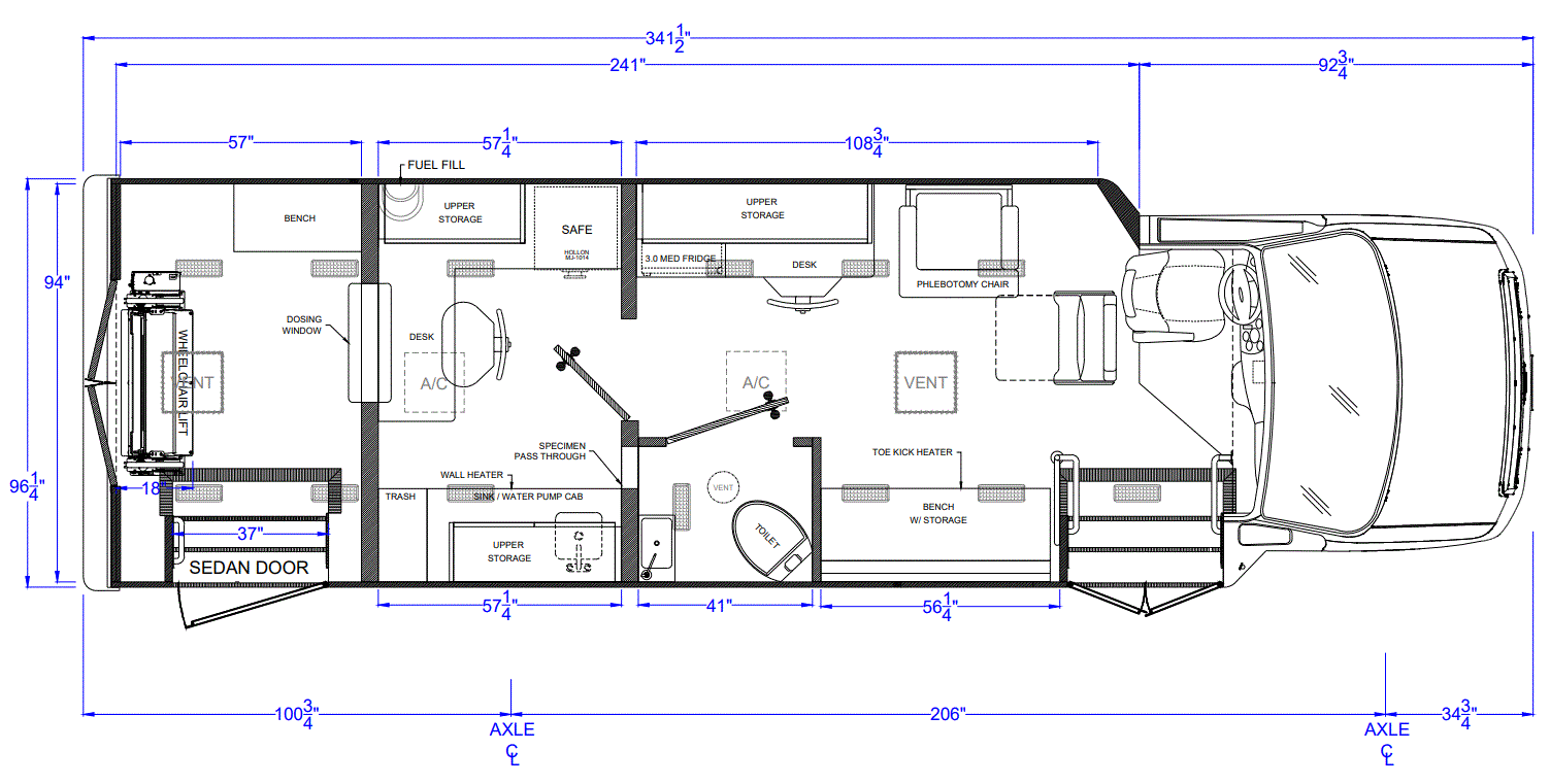 Our vehicles are NEVER built from retrofitted RV’s which are not designed to hold up to the operational use of medical clinics. Each TESCO Specialty Vehicles is custom built for its commercial application, with steel body construction directly to the chassis. We welcome the opportunity to show you the difference and review with you our manufacturing process.