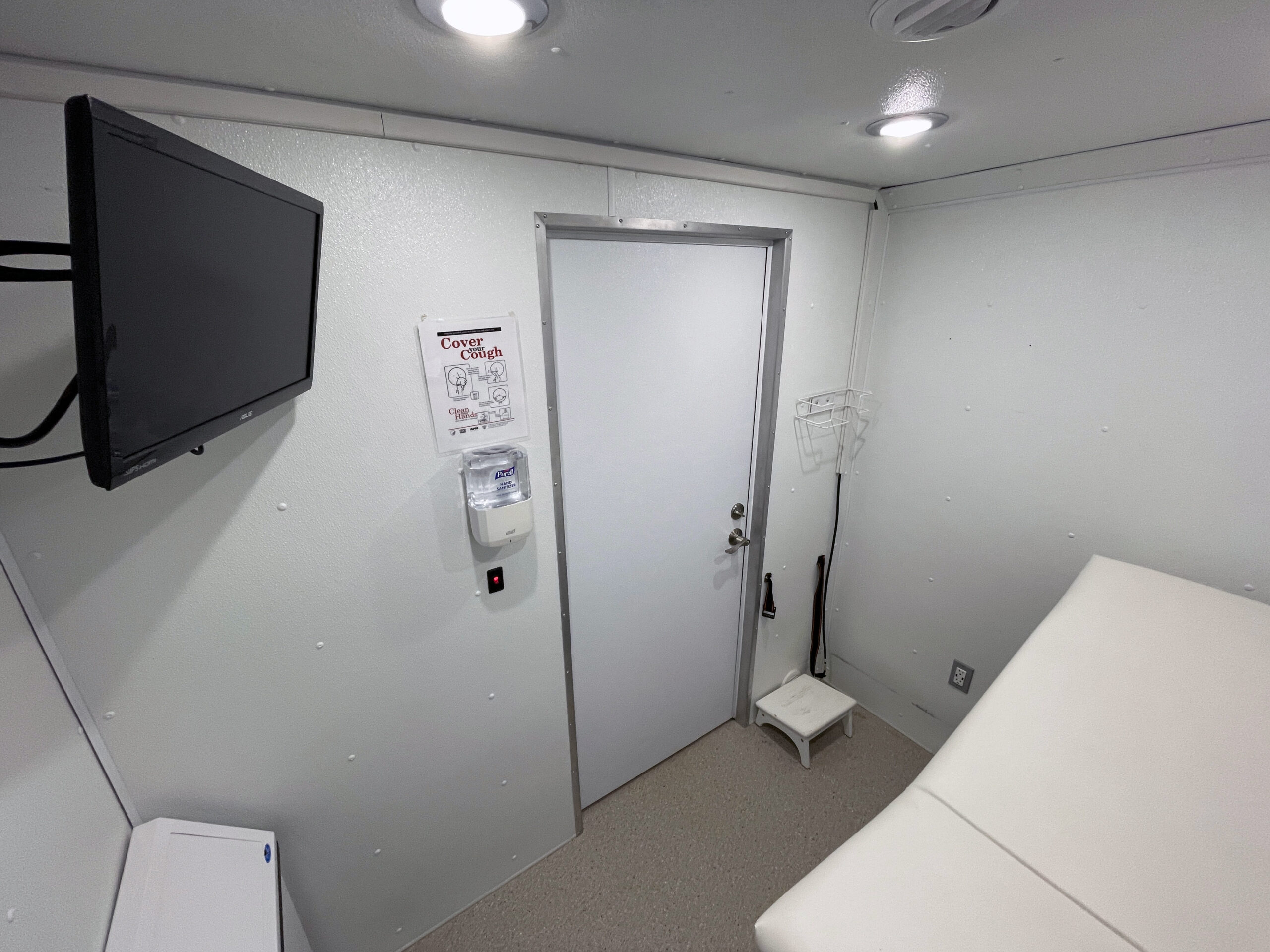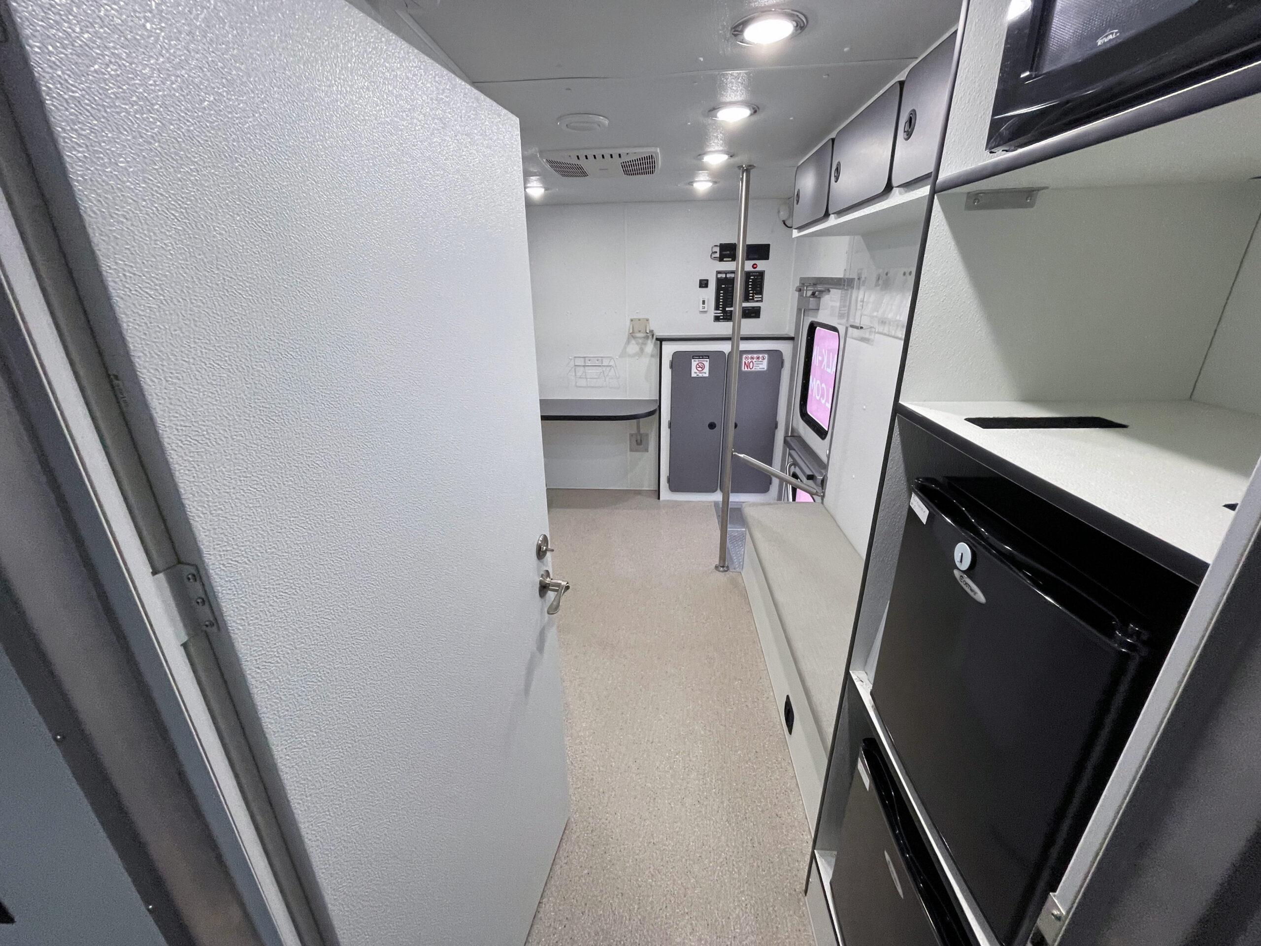For sale is a 2018 Mobile Medical Clinic on a Chevy Express 4500 chassis with the only 3,084 miles! This unit is in excellent shape and still feels ‘Like New’ as it was not deployed daily. This unit has a check-in/waiting area and a separate exam room. The unit is equipped with a Cummins Onan 7 Kw Commercial Generator with 345 hours and 30 Amp Shore Power access w/ cord. The front waiting area includes bench seating throughout, a Coleman Mach Rooftop A/C Unit, 120 Volt AC system, 12 Volt DC System, ISeries tank systems monitor for fresh and waste water tanks, Upper and Lower custom laminate locking cabinetry, sink/sanitation, workstation, (4) GFI outlets, (2) Costway convenience refrigerator, Airxcel carbon monoxide alarm, Rival microwave, and bathroom with a sink and specimen pass through. The back exam room has its own privacy locking door, Ritter 104 exam bed, ASUS TV Monitor, (2) GFI outlets, and trash can. This unit has as LED lighting throughout the interior, a backup camera w/ 7in screen for monitoring, and 2 outer storage compartments. For more information, please contact Ben at 419-708-3112.