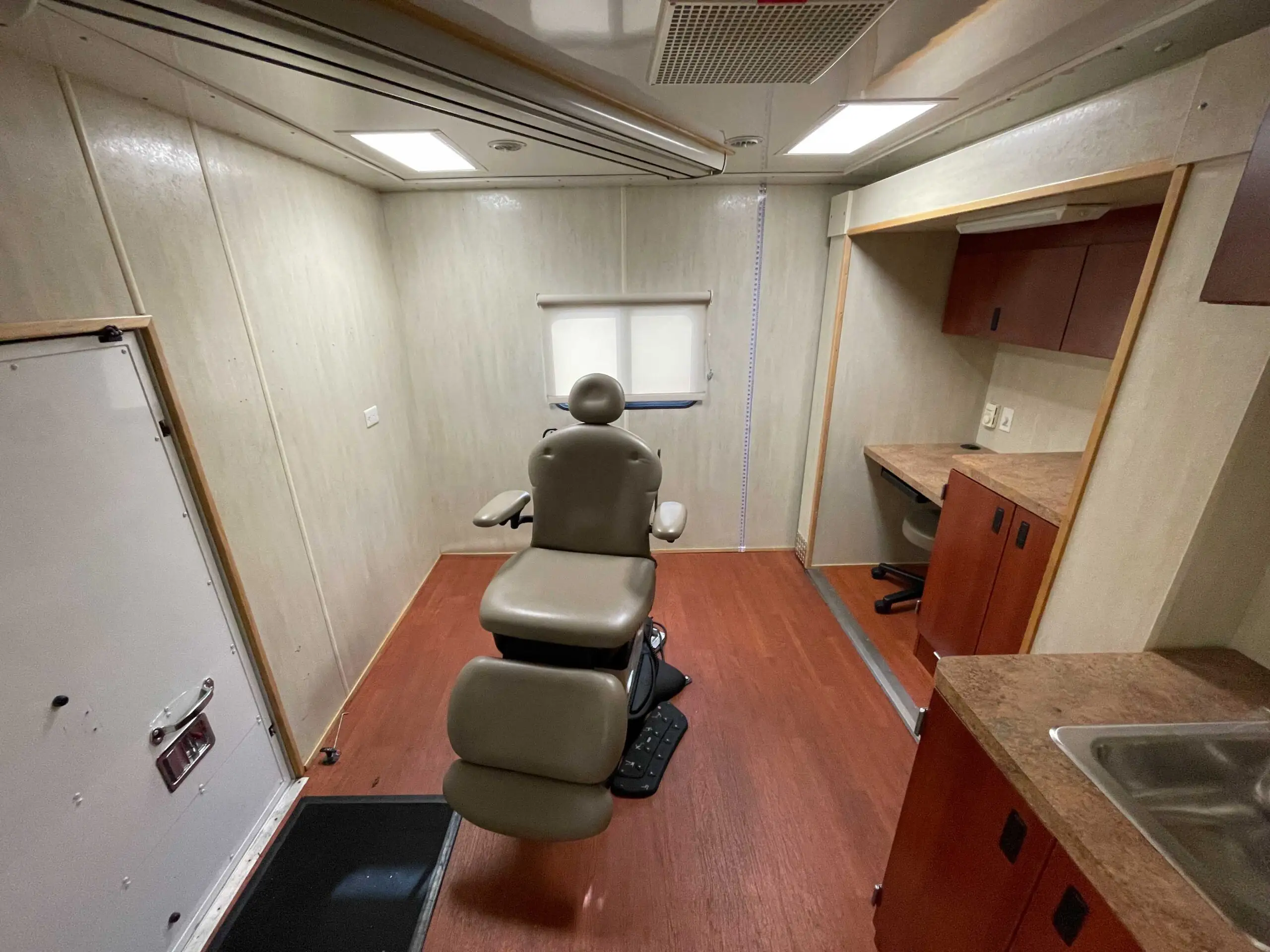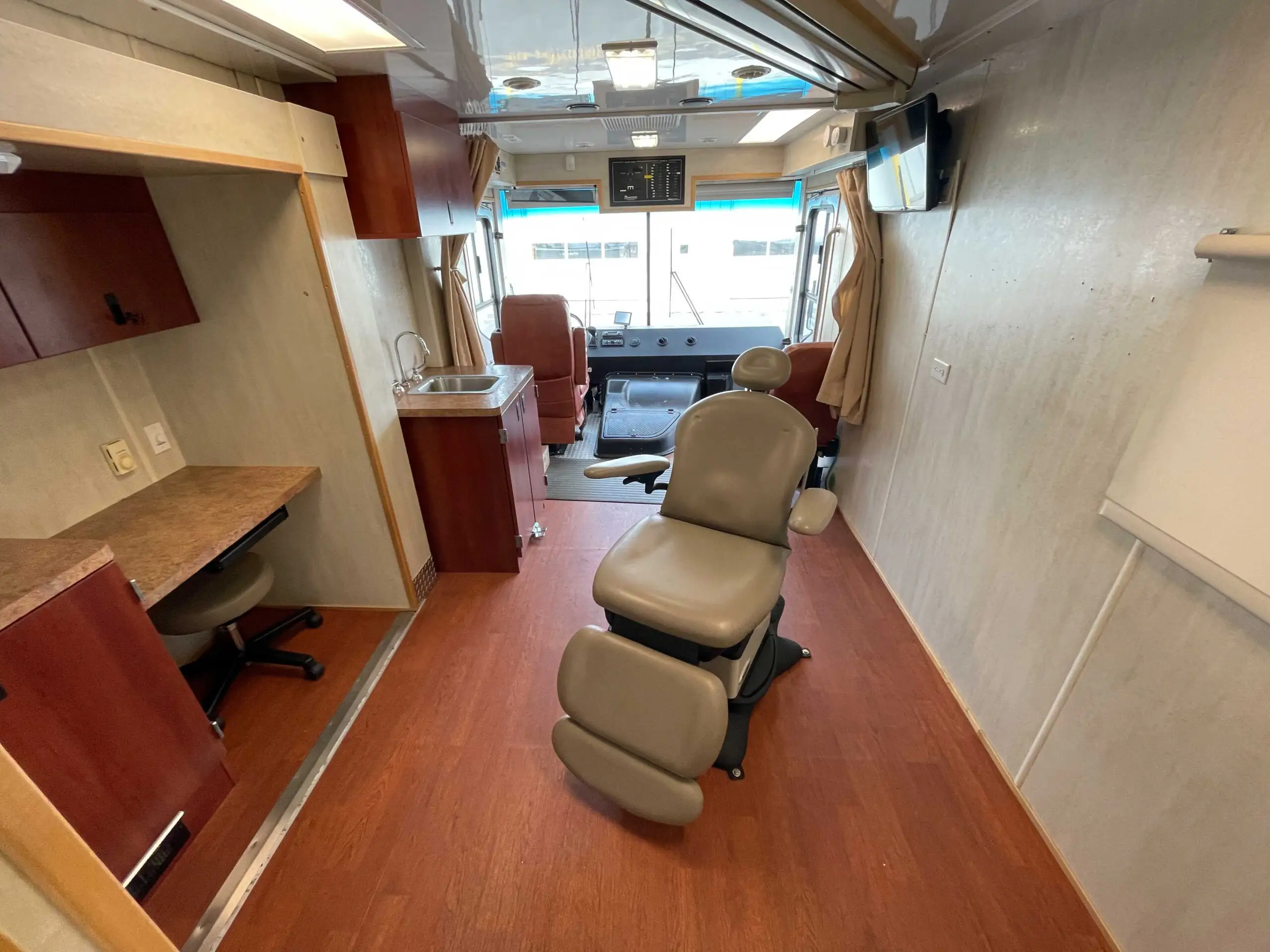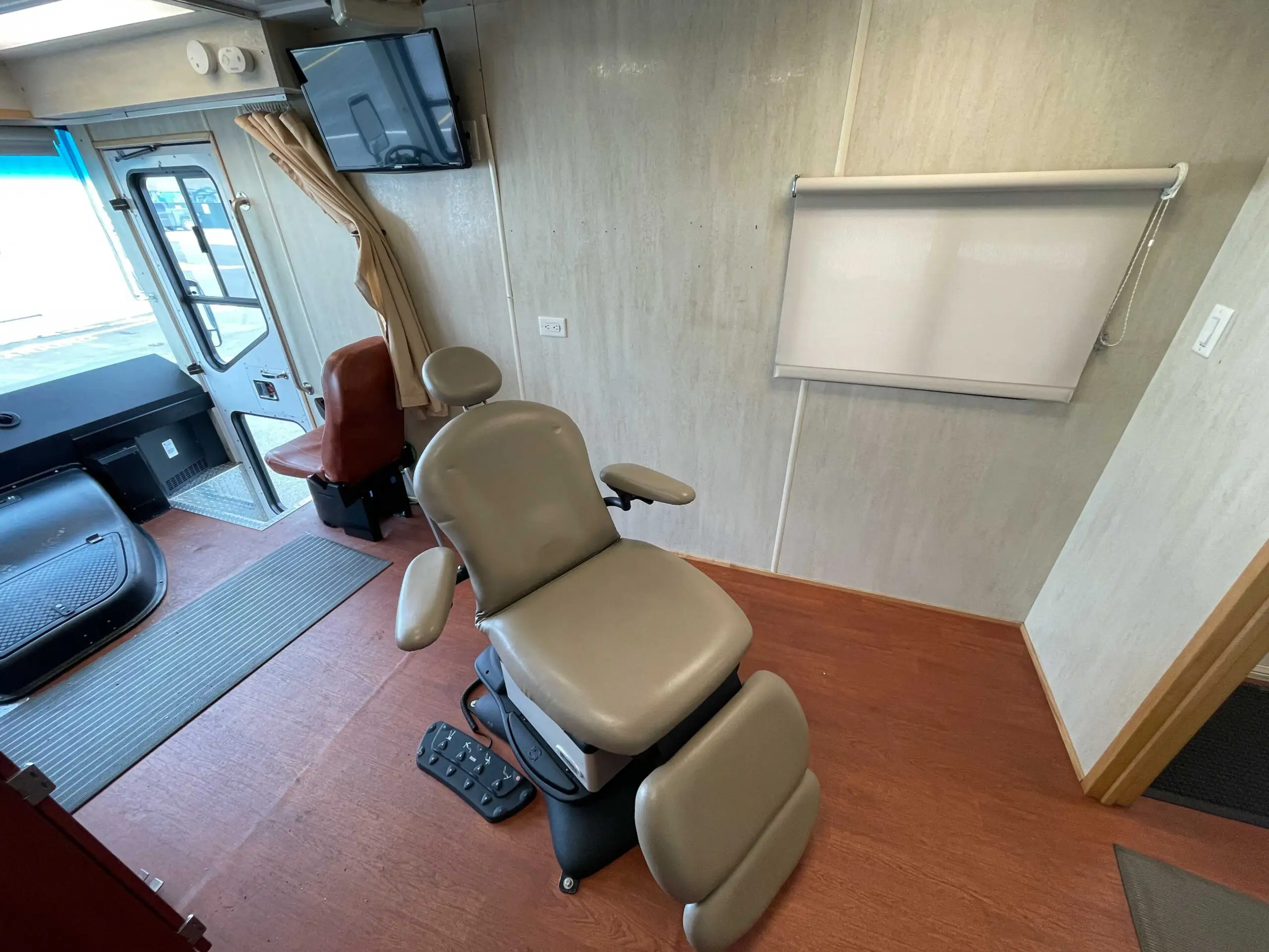 For sale is a 2015 Thomas Built mobile clinic, CDL required. This unit features two separate exam areas, each with privacy doors, as well as a waiting area. The front exam room is equipped with a Midmark 641 exam chair, a sink, rooftop air conditioning, a workstation, upper and lower locking cabinets, a trash can, a privacy curtain, and a Samsung TV monitor. The middle room offers two locking Summit medical fridge/freezers, a Franklin Chef microwave, a workstation, a waiting bench, upper and lower locking cabinets, a bathroom with a specimen pass-through and a rooftop power vent, a Prevent sharps disposable container, a networking cabinet, and a Samsung TV monitor. The rear exam room includes a Midmark 641 exam chair, a workstation, a sink, upper and lower locking cabinets, and a Samsung TV monitor. This mobile clinic is also equipped with a 20 kW Cummins generator, a Braun UVL wheelchair lift, a backup camera system, a Dometic power awning, and an outer TV monitor with an enclosure. For more information or to schedule a viewing, please contact Ben at 419-708-3112.